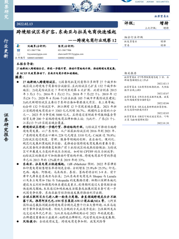 【国泰君安证券】【20220213】跨境综试区再扩容,东南亚与拉美电商快速崛起-5页 行业研究