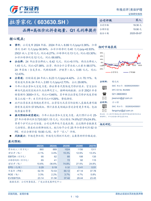 【广发证券】【20250507】拉芳家化品牌+高性价比抖音起量,Q1毛利率提升-10页 证券期货研究报告