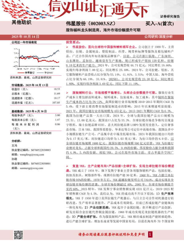 【山西证券】【202510】深度报告-20251014-山西证券-伟星股份-002003.SZ-服饰辅料龙头制造商_海外市场份额提升可期-43页 证券期货研究报告