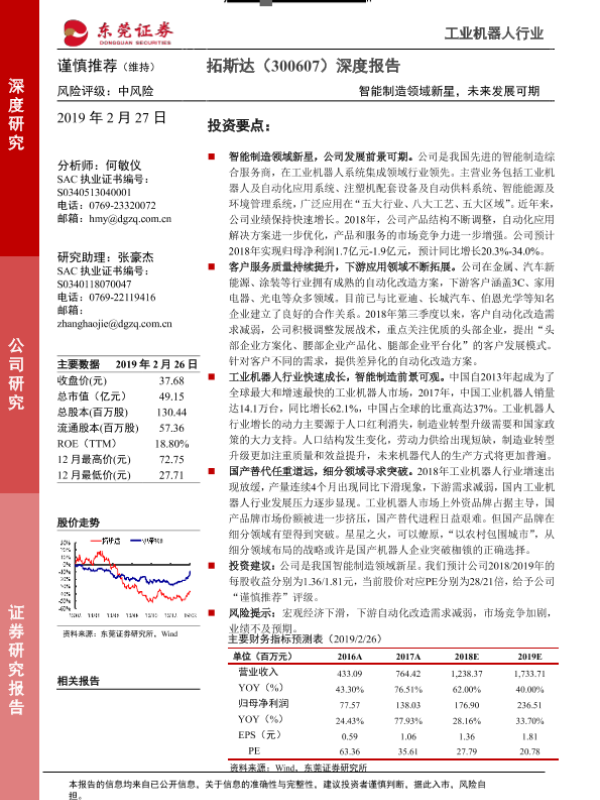 【东莞证券】【20190227】20190227-东莞证券-拓斯达-300607.SZ-智能制造领域新星,未来发展可期-22页 行业研究