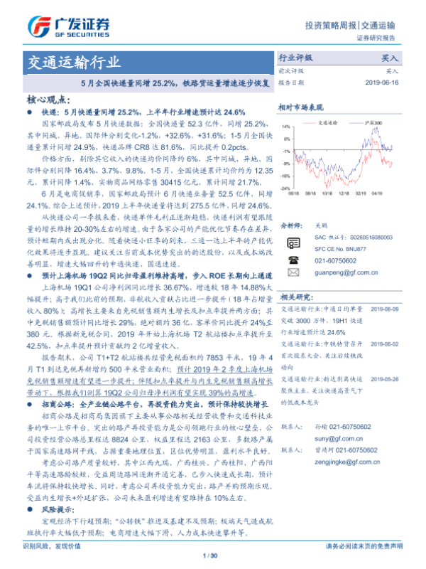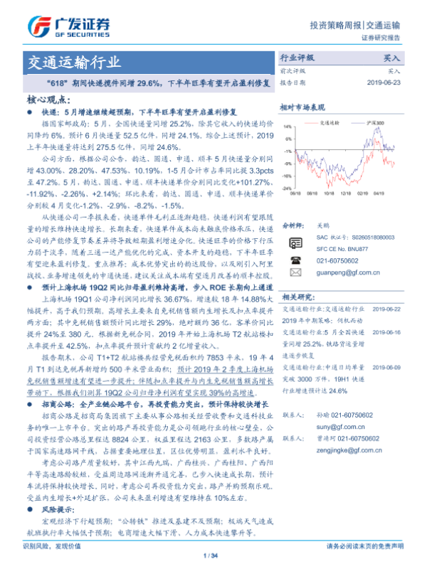 广发证券 交通运输仓储邮政 2019年 PDF 2.15 MB