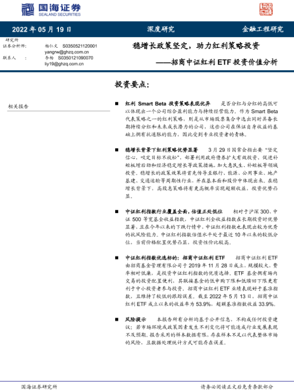 【国海证券】【20220519】招商中证红利ETF投资价值分析:稳增长政策坚定,助力红利策略投资-27页 行业研究