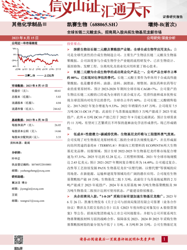 【山西证券】【20230815】全球长链二元酸龙头,招商局入股共拓生物基尼龙新市场-41页 公司研究