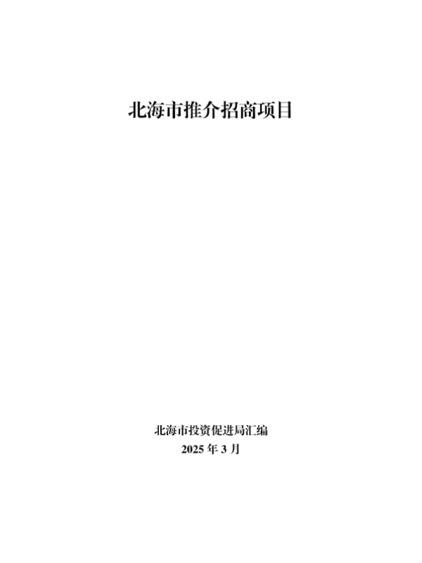 【北海市投资促进局】【202503】北海市2025年重点推介招商引资项目册-183页 市场调研