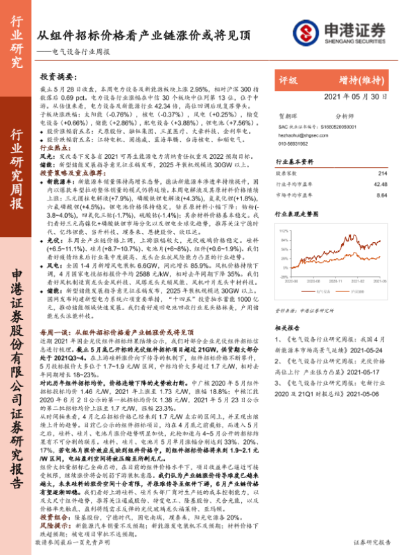 【申港证券】【20210530】从组件招标价格看产业链涨价或将见顶-48页 行业研究