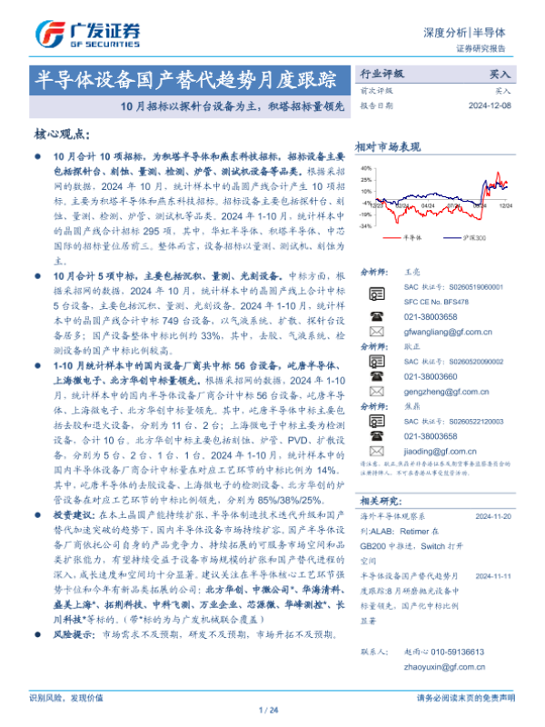 【广发证券】【20241208】半导体设备国产替代趋势月度跟踪:10月招标以探针台设备为主,积塔招标量领先-24页 行业研究