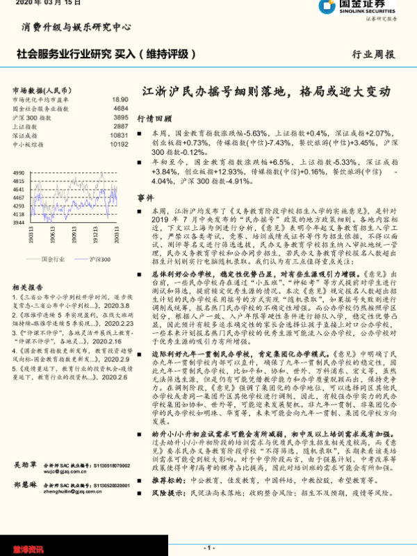 【国金证券】【20200315】社会服务业行业研究周报:江浙沪民办摇号细则落地,格局或迎大变动-8页 行业研究