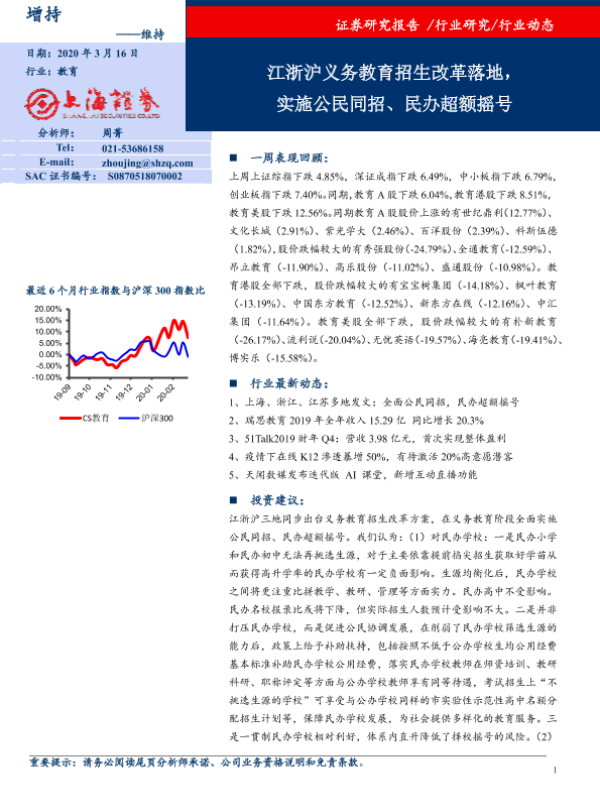 【上海证券】【20200316】江浙沪义务教育招生改革落地,实施公民同招、民办超额摇号-9页 行业研究
