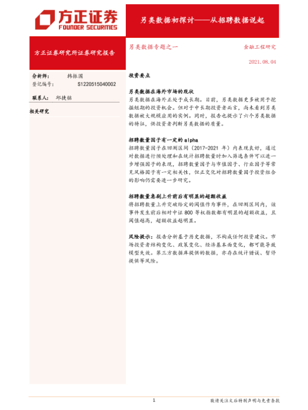 【方正证券】【20210804】另类数据初探讨,从招聘数据说起-15页 行业研究