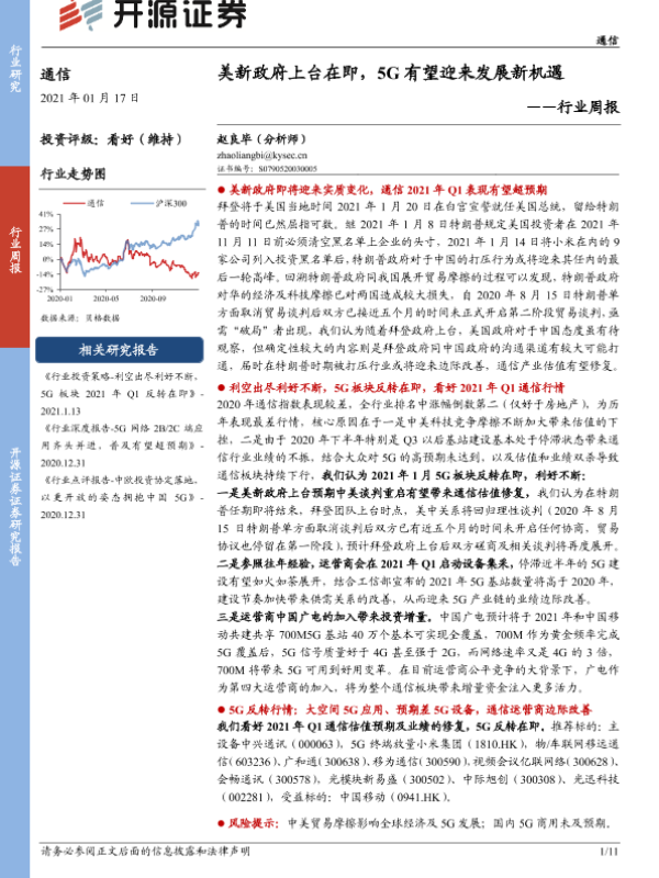 【开源证券】【20210117】20210117-开源证券-通信行业周报:美新政府上台在即,5G有望迎来发展新机遇-11页 行业研究