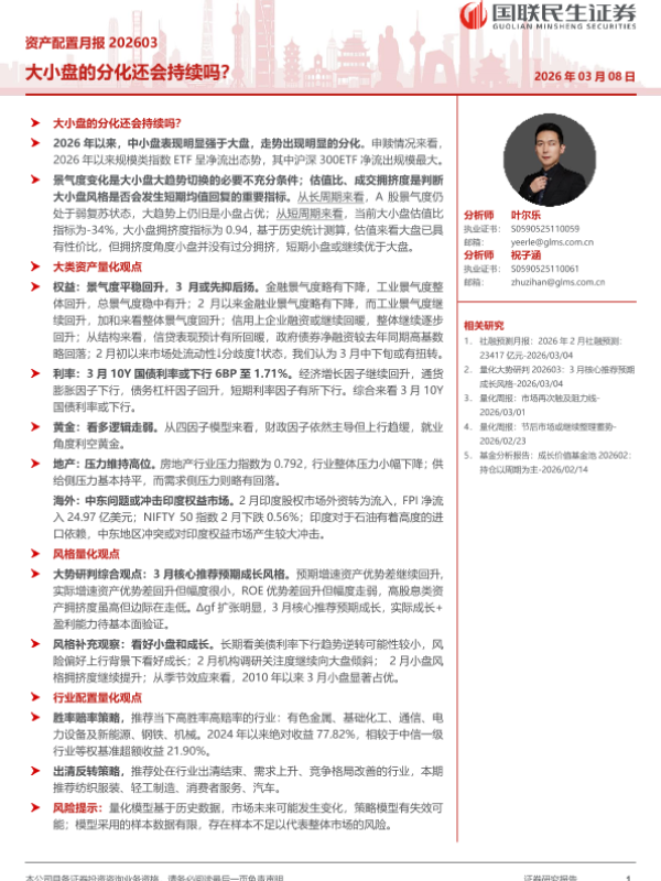 【国联民生证券】【202603】资产配置月报:大小盘的分化还会持续吗?-33页 证券期货研究报告