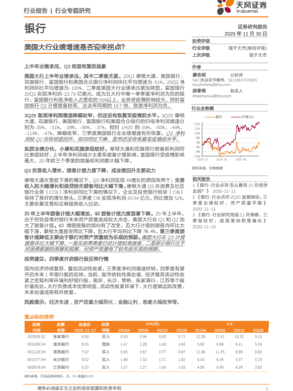 【天风证券】【20201130】美国大行业绩增速是否迎来拐点?-14页 行业研究