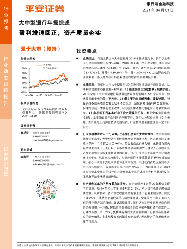 【平安证券】【20210401】大中型银行年报综述:盈利增速回正,资产质量夯实-14页 行业研究