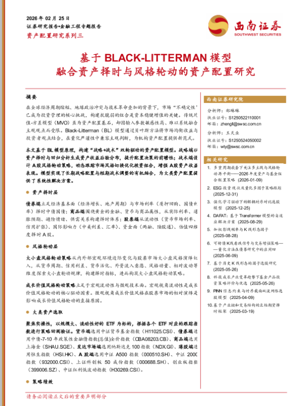 【西南证券】【2026】基于BLACK-LITTERMAN模型融合资产择时与风格轮动的资产配置研究-27页 证券期货研究报告