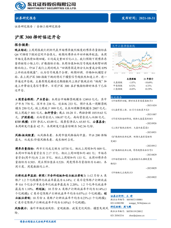 【东北证券】【20211031】金融工程研究报告:沪深300择时临近开仓-31页 行业研究