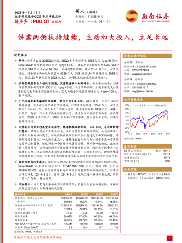【浦银国际】【202505】拼多多(PDD.US):利润暴跌,风险尚未 完全释放,维持“持有”评级-7页 公司研究