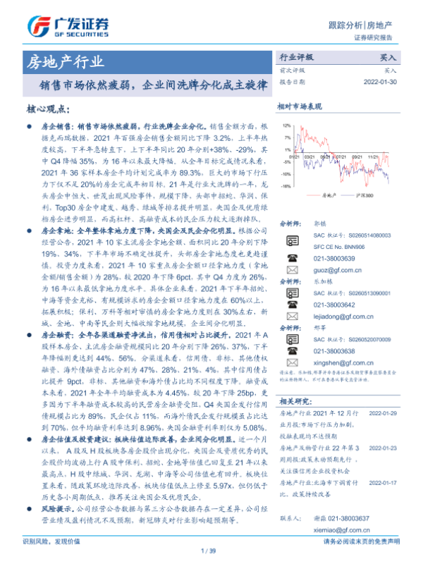 【广发证券】【20220130】房地产行业跟踪分析:销售市场依然疲弱,企业间洗牌分化成主旋律-39页 行业研究
