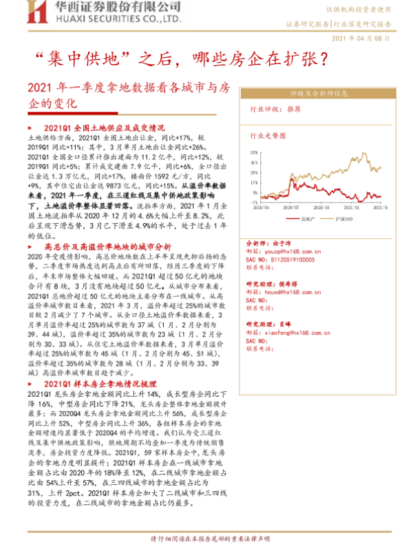 【华西证券】【20210408】2021年一季度拿地数据看各城市与房企的变化:“集中供地”之后,哪些房企在扩张?-20页 行业研究
