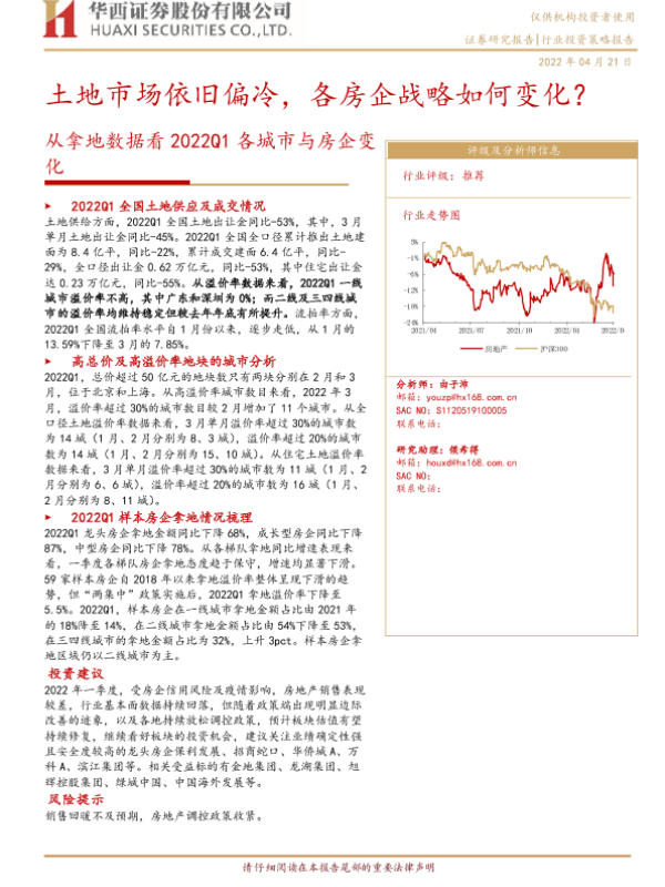 【华西证券】【20220421】房地产行业从拿地数据看2022Q1各城市与房企变化:土地市场依旧偏冷,各房企战略如何变化?-15页 行业研究