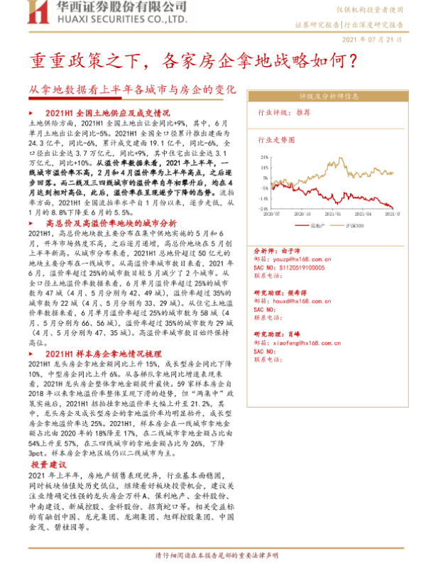 【华西证券】【20210721】房地产行业从拿地数据看上半年各城市与房企的变化:重重政策之下,各家房企拿地战略如何?-19页 行业研究