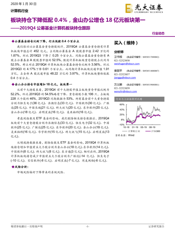 【光大证券】【20200130】2019Q4公募基金计算机板块持仓跟踪:板块持仓下降低配0.4%,金山办公增仓18亿元板块第一-7页 行业研究