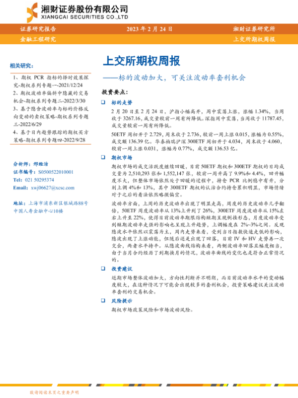 【湘财证券】【20230224】上交所期权周报——标的波动加大,可关注波动率套利机会-9页 行业研究