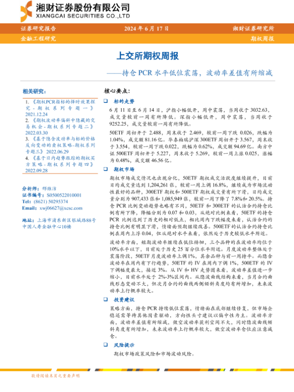 【湘财证券】【20240617】上交所期权:持仓PCR水平低位震荡,波动率差值有所缩减-12页 行业研究