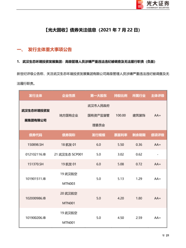 【光大证券】【20210722】【光大固收】债券关注信息-20210722-21页 行业研究