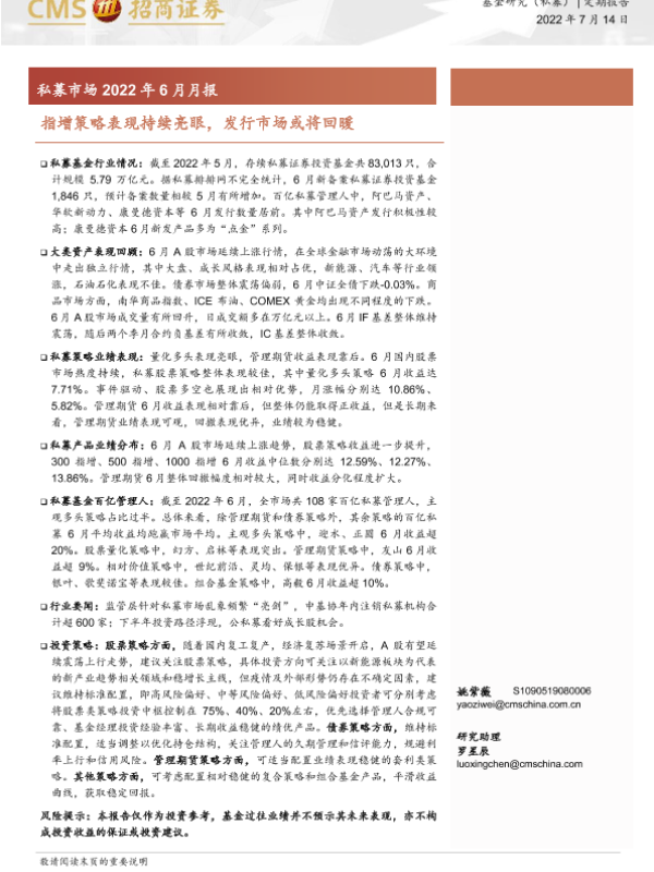 【海通证券】【20220714】私募市场2022年6月月报:指增策略表现持续亮眼,发行市场或将回暖-18页 行业研究