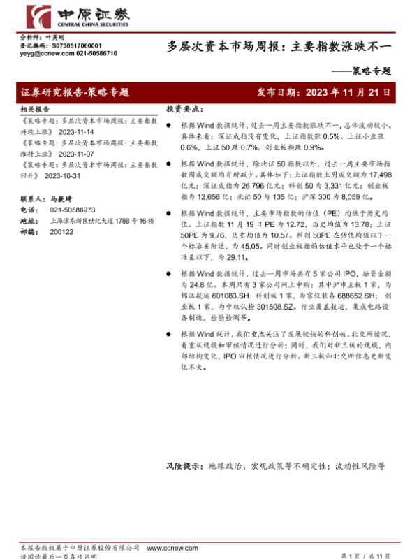 【中原证券】【20231121】策略专题:多层次资本市场周报:主要指数涨跌不一-11页 行业研究
