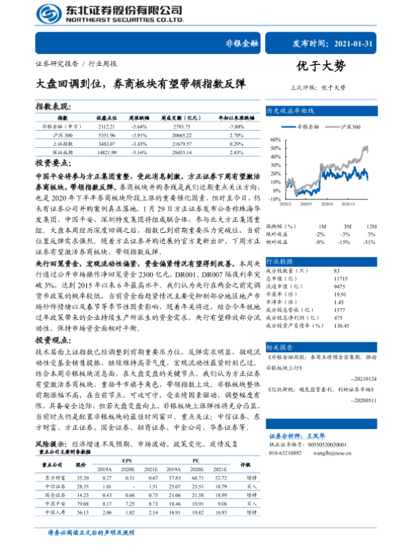 【东北证券】【20210131】大盘回调到位,券商板块有望带领指数反弹-20页 行业研究