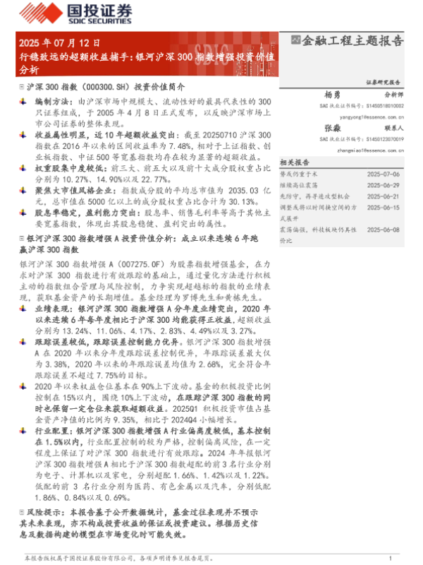 【国投证券】【20250712】行稳致远的超额收益捕手:银河沪深300指数增强投资价值分析-14页 证券期货研究报告