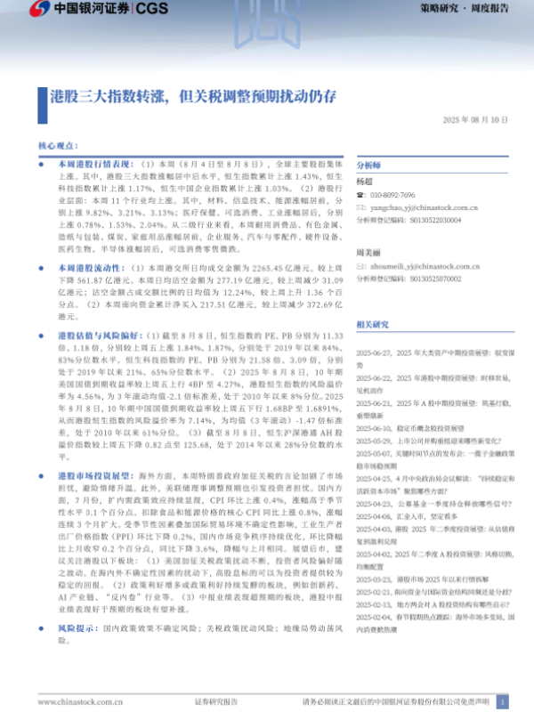 【银河证券】【20250810】港股三大指数转涨,但关税调整预期扰动仍存-9页 证券期货研究报告