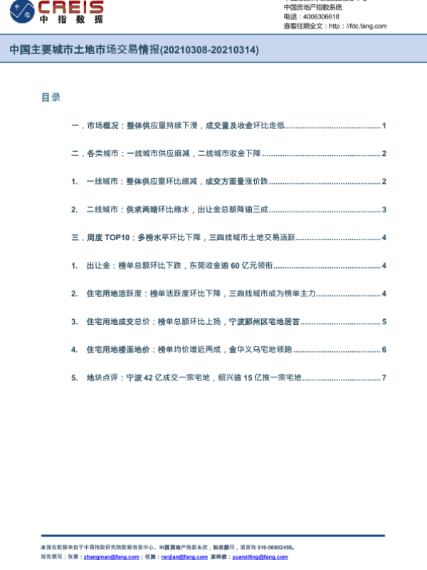 【中指研究院】【20210317】中国主要城市土地市场交易情报-9页 市场调研