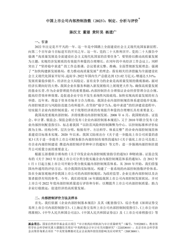 【陈汉文】【20240201】中国上市公司内部控制指数(2023):制定、分析与评价-10页 行业研究