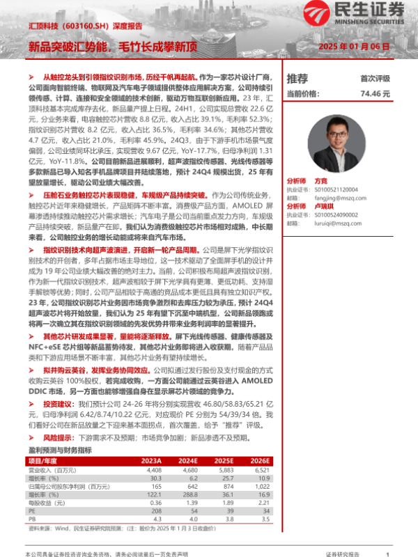 【民生证券】【20250106】20250106-民生证券-汇顶科技-603160.SH-深度报告:新品突破汇势能,毛竹长成攀新顶-30页 行业研究