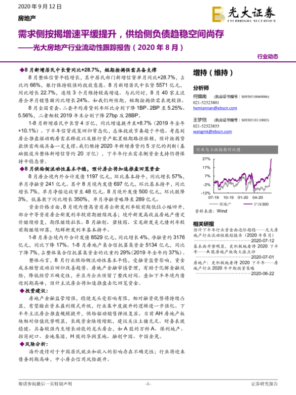 【光大证券】【20200912】光大房地产行业流动性跟踪报告(2020年8月):需求侧按揭增速平缓提升,供给侧负债趋稳空间尚存-10页 行业研究