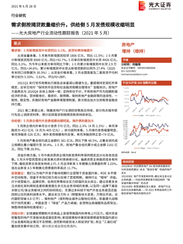 【光大证券】【20210628】光大房地产行业流动性跟踪报告-10页 行业研究