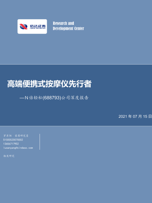 【信达证券】【20210715】倍轻松:高端便携式按摩仪先行者-31页 行业研究