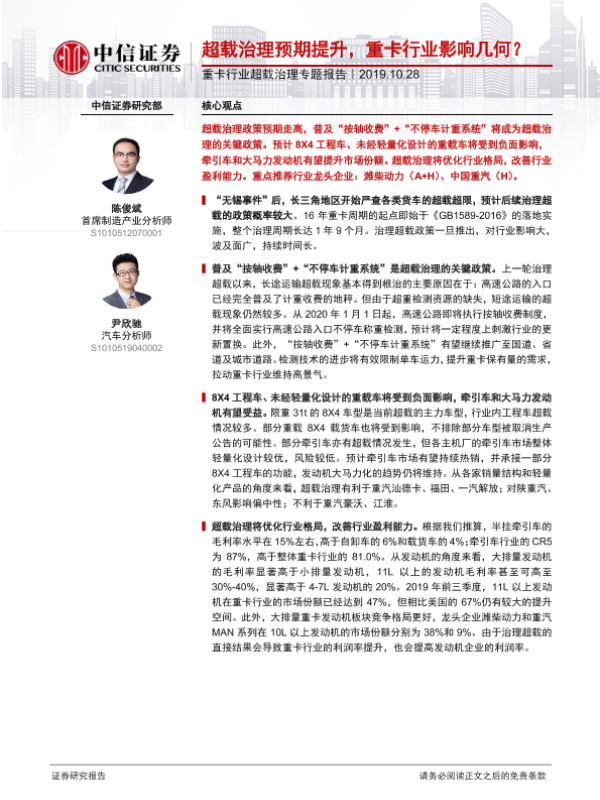 【中信证券】【20191028】超载治理预期提升,重卡行业影响几何?-19页 行业研究