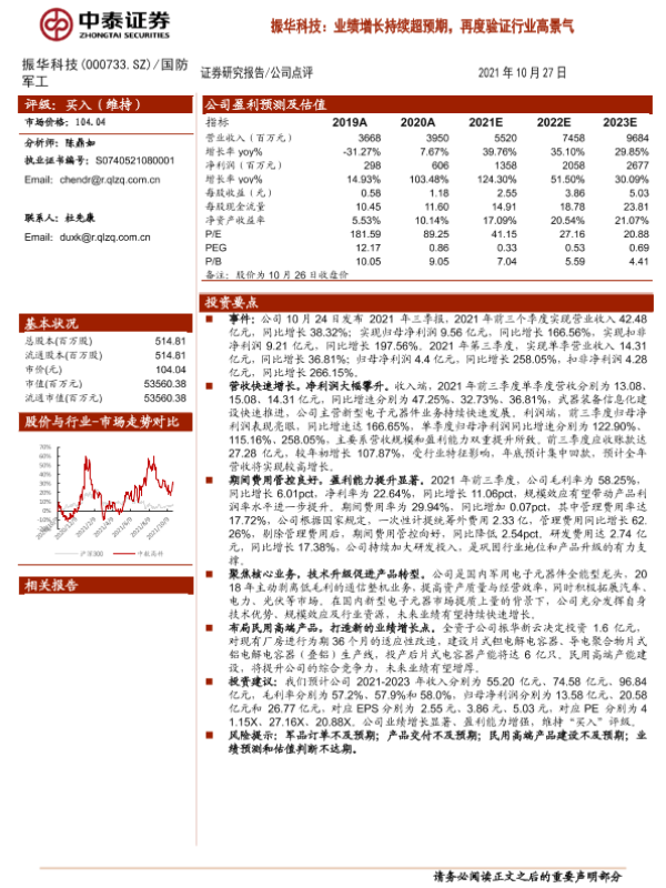 【中泰证券】【20211027】振华科技:业绩增长持续超预期,再度验证行业高景气-3页 行业研究