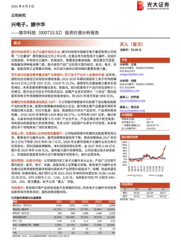 【光大证券】【20210808】兴电子,振中华——振华科技(000733.SZ)投资价值分析报告-39页 行业研究