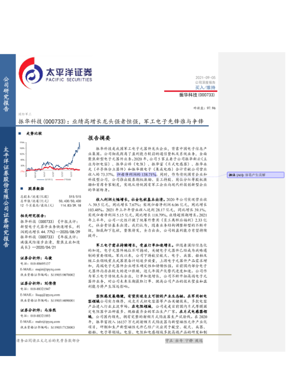 【太平洋证券】【20210905】振华科技(000733):业绩高增长龙头强者恒强,军工电子先锋谁与争锋-35页 行业研究