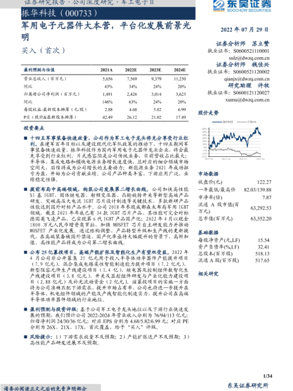 【东吴证券】【20220729】振华科技-军用电子元器件大本营,平台化发展前景光明-34页 行业研究
