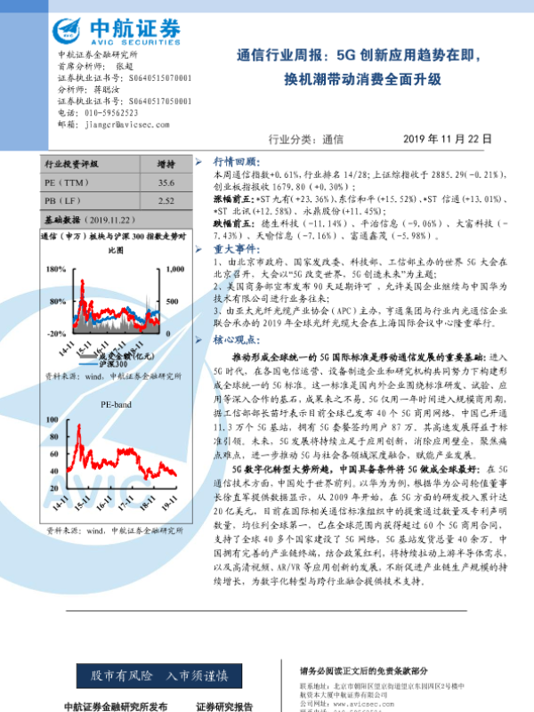 【中航证券】【20191122】20191122-中航证券-通信行业周报:5G创新应用趋势在即,换机潮带动消费全面升级-3页 行业研究