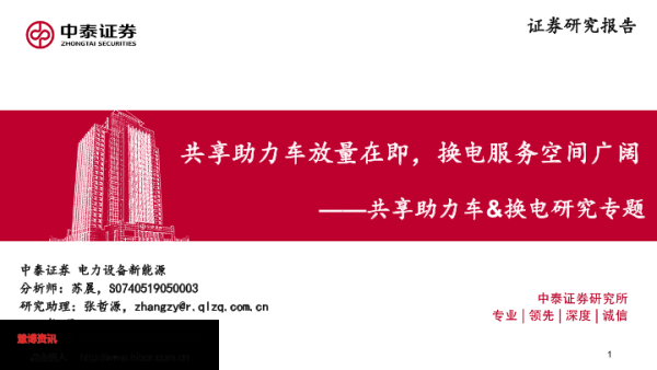 【中泰证券】【202003】共享助力车&换电研究专题:共享助力车放量在即,换电服务空间广阔-61页 行业研究