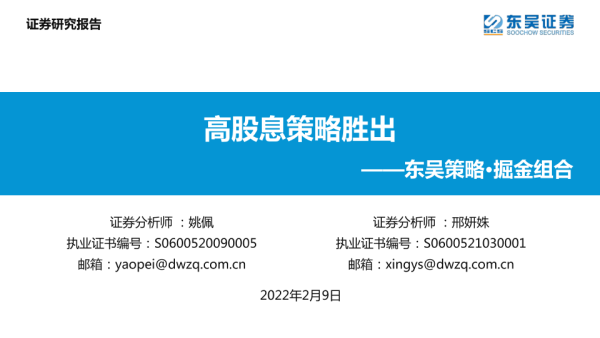 【东吴证券】【20220209】东吴策略·掘金组合:高股息策略胜出-37页 行业研究