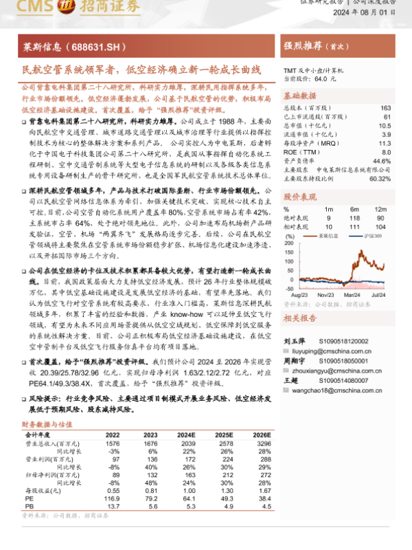 【海通证券】【20240801】民航空管系统领军者,低空经济确立新一轮成长曲线-28页 行业研究