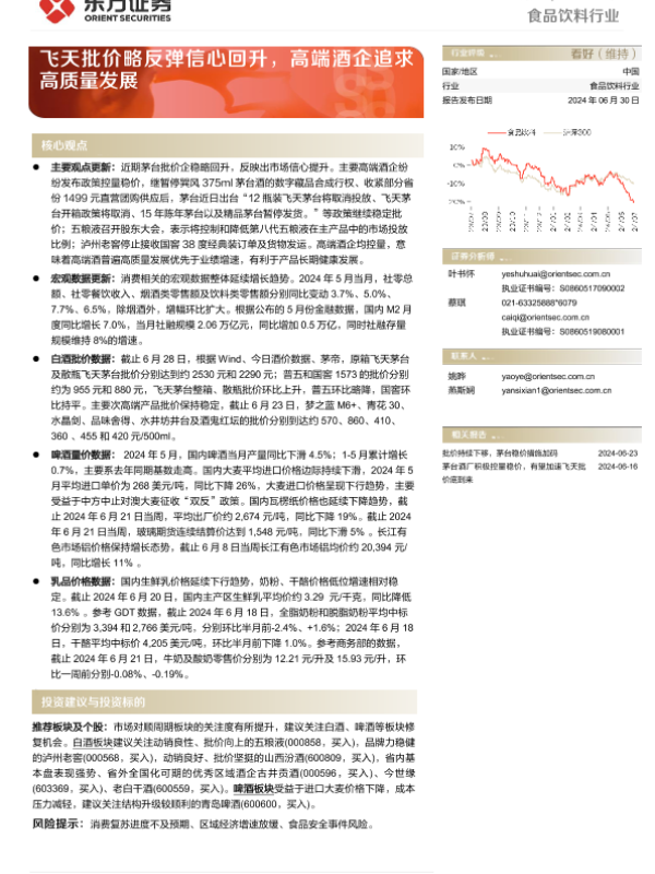 【东方证券】【20240630】食品饮料行业周报:飞天批价略反弹信心回升,高端酒企追求高质量发展-11页 行业研究