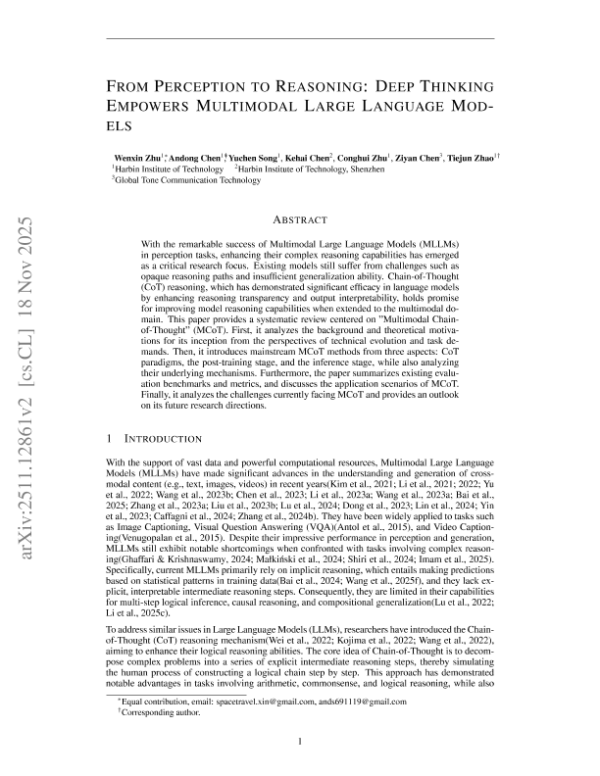 【Harbin Institute of Technology&Shenzhen&Global Tone Communication Technology】【2025】From Perception to Reasoning Deep Thinking Empowers Multimodal Large Language Models-44页
